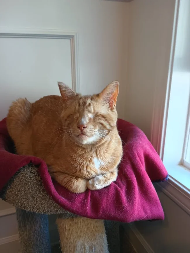 15. "У нашего Теодора - повреждение мозга. Когда он был котёнком, хозяева с ним жестоко обращались. Сейчас ему 12 лет"