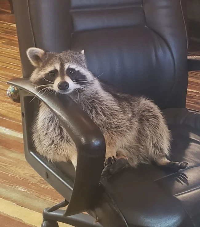 16. Спасают не только кошек и собак! Эту енотиху взяли домой, потому что у неё слабые суставы, и она не может нормально жить в дикой природе. Уже 11 лет она живёт с хозяевами