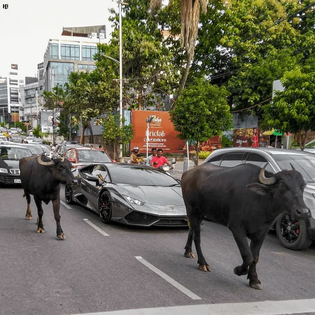 Причудливые автомобили и городские улицы с высотными зданиями — обычное дело, но коровы, бродящие по ним — это нечто уникальное.