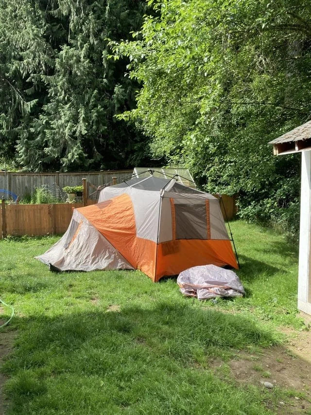 Кто-то выбросил палатку на 11 человек в парке, в котором я работаю. Для неё нужна только новая стойка. Все молнии работают, никаких потёртостей или разрывов. Выглядит как новая, стоит около 250 баксов.