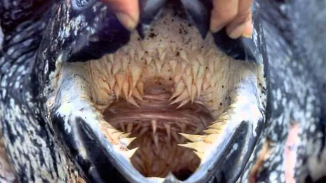 Черепашки кажутся очень милым до тех пор, пока вы не решите заглянуть ей в рот. До самого желудка их пищевод устлан колючими выступами, помогающими задерживать медуз, которыми они в основном и питаются. Во время трапезы черепаха с помощью горловых мышц выталкивает из себя воду, а зубцы как раз задерживают пищу. Также эти выступы защищают слизистую черепашки от яда медуз.