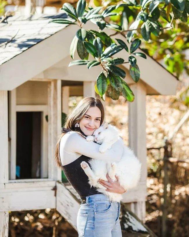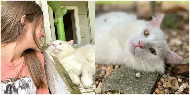Американка по имени Джулия Дэвис не так давно переехала в новый дом в Алабаме. Спустя несколько дней она заметила, что в пустом садовом курятнике живёт кот.. Оказалось, что предыдущие хозяева дома решили таким образом избавиться от котейки, просто оставив его в саду. Но девушка не оставила беднягу в беде. Несмотря на то, что у неё есть свои животные - кошка и собака, - Джулия взяла котика под свою опеку.