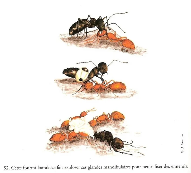 Естественно, самопожертвование для отважных крох заканчивается гибелью. Но шансы на выживание у остальных значительно возрастают. Такое поведение характерно исключительно для рабочих муравьёв.