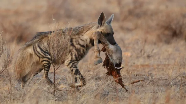 Полосатая гиена: Непривычный нам вид гиен, заселивший Азию. Они совсем непохожи на пятнистого собрата и даже научились дружить с волками (12 фото)
