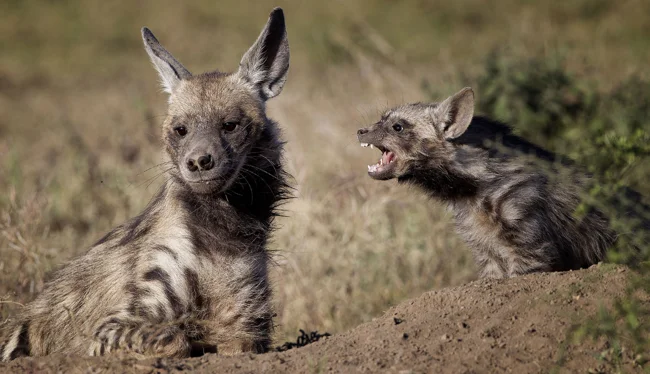 Второй пунктик, объясняющий миролюбивость этих зверей, — они предпочитают одиночество. Справедливости ради, не тотальное: в зависимости от места жительства и количества доступных ресурсов гиены собираются в небольшие группы. Чем больше еды и воды в округе, тем дольше звери будут оставаться вместе. Состав гиеньих групп бывает разным: например, в некоторых африканских популяциях замечали самку и сразу несколько самцов. А вот в Центральной Азии видели разнополую пару. Также в любой стае могут остаться детёныши из предыдущего помёта.