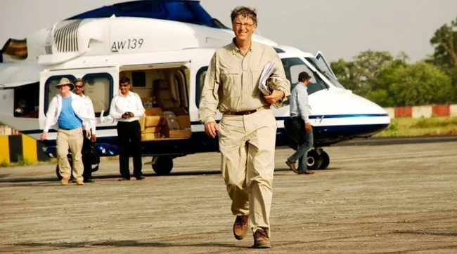 11. Билл Гейтс на фоне частного вертолёта во время визита в Кению