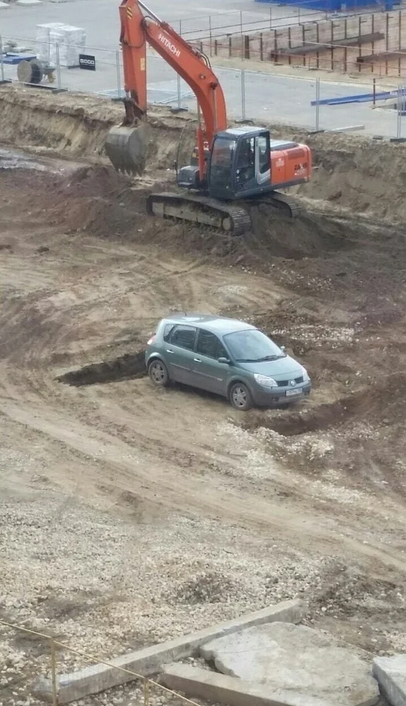 У знакомого рядом с домом дорогу строят. И какой-то «м..» вчера там машину припарковал. С утра приехал экскаватор, долго бибикал, никто за машиной не пришёл. В итоге работяга придумал идеальный план мести.