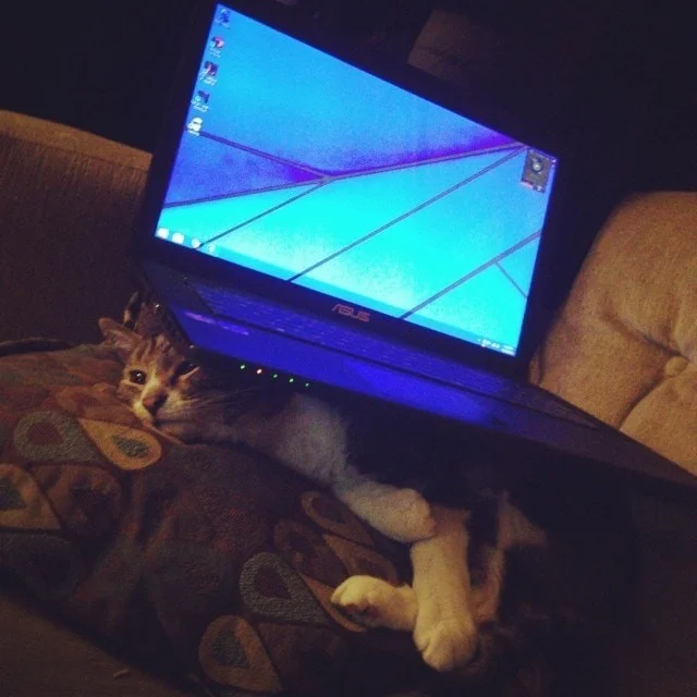 Всю ночь это чучело бегало, прыгало, шумело и не давало спать, теперь наступило мое время. И судя по мордашке он этому совершенно не рад.