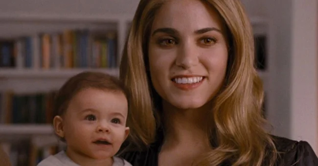 Вместо того, чтобы найти настоящего ребёнка, что для съёмок фильмов делают тут и там, это вроде как не проблема, создатели «Сумерек» решили нарисовать ребёнка на компьютере. Мало того, что на это было угрохано очень много денег, так и само дитя вышло прямо-таки кринжовым.