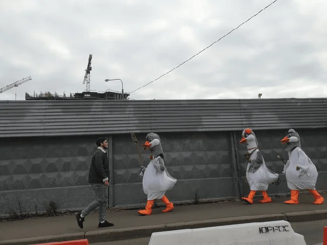 Предлагаю подборку фото, где люди в ростовых костюмах делают нашу реальность нелепой, а иногда и жутковатой.