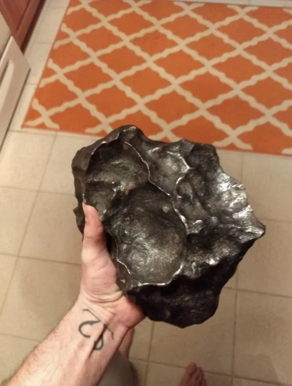8. А вот так выглядит небольшой кусок случайного метеорита. Он очень тяжелый