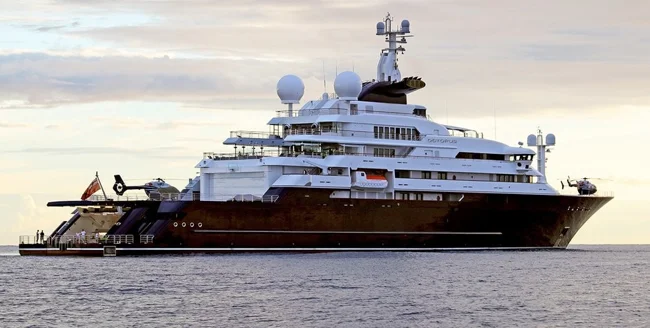 Спущенная на воду в 2003 году яхта «Октопус» стоила своему владельцу 200 миллионов долларов. Это восьмипалубное судно с экипажем в 63 человека может взять до 26 пассажиров на борт, предоставив им исключительно комфортабельные условия. Но, кроме этого, на яхте имеются две посадочные площадки для вертолетов, а также плавучий док в кормовой части. В доке находятся сверхмалая субмарина Pagoo, дистанционно управляемый подводный аппарат Argus Mariner XL, оборудованный камерой высокого разрешения, эхолотом и гидроакустической станцией, способный погружаться до 3000 м, а также полностью автономный аппарат Bluefin 12D.