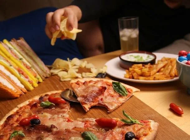 Он заказал пиццу Pizza Hut Super Supreme Deep Dish плюс обычную пиццу с тремя видами сыра, оливками, сладким перцем, помидорами, чесноком и итальянской колбасой. Ещё у него было 10 упаковок сыра "Пармезан" по 8 унций (225 г); 10 пакетов с соусом "Ранчо" по 8 унций; один большой пакет сыра Doritos для начос; 8 унций сыра халапеньо начо; 4 унции нарезанного халапеньо; 2 больших клубничных коктейля; две бутылки вишнёвой колы; один большая упаковка картофеля фри из McDonald’s с дополнительным кетчупом и майонезом; две пинты клубничного мороженого. Всё это вместе составило чуть менее 29 000 калорий.