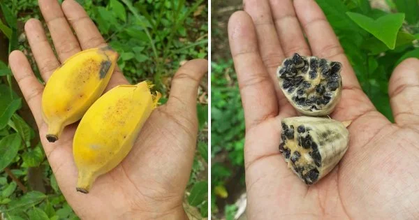 Невероятно красивые внешне бананы, которые почти никогда не употребляются в пищу, так как у них нейтральный вкус. Однако некоторые люди с удовольствием лакомятся ими, предварительно удалив семена.