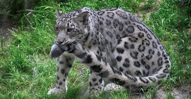 Может показаться, что снежному барсу не бывает холодно, однако у него вполне себе может мёрзнуть нос. Именно поэтому эти животные носят во рту свой хвост, защищаясь от холода.