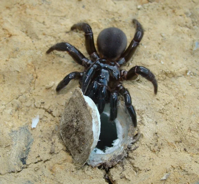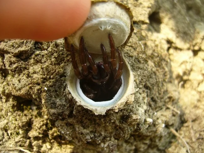 Африканский паук-каменщик: Плетёт из паутины целую нору, которая превращается в капкан смерти для проходящих мимо существ (8 фото)