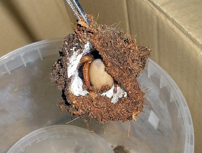 Правда, сначала ему придётся хорошенько поработать. Обычные пауканы плетут сеть за несколько часов, а каменщик трудится до 15 дней. Его дом — выстланная паутиной нора, которую хищник выкапывает самостоятельно при помощи крупных когтей на педипальпах. Ненужный материал паук оборачивает в паутину и выкидывает пакетики за пределы будущего дома. Наплевательское отношение к экологии!