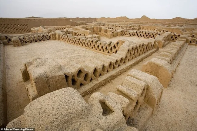 Чан-Чан, история которого восходит к 850 году нашей эры, когда-то был самым большим городом в Америке, пока в конце XV века его не захватили инки. Земляной мегаполис занимал площадь почти в 20 квадратных километров. Здесь проживало не менее 30 000 человек. Но сейчас, несмотря на продолжающиеся работы по сохранению этого места, Чан-Чан продолжает разрушаться. В 2007 году ЮНЕСКО пришла к выводу, что нынешний уровень эрозии является «быстрым и, по-видимому, неудержимым». Растущие осадки и все более частые штормы, бушующие по всему Перу с угрожающей частотой, медленно смывают город.
