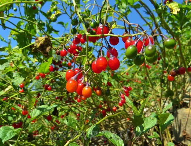 Может показаться, что это ветка томатов черри, однако это паслен сладко-горький. Пробовать его не стоит, поскольку он ядовит и опасен для человека.