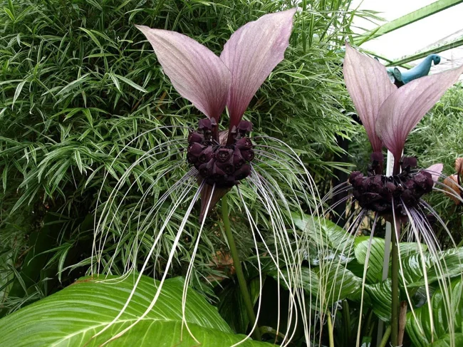 Ну и закончим вот таким необычным цветком, как такка шантрье. В простонародье его называют цветком летучей мыши, ведь он выглядит так, будто на нём спят эти млекопитающие. ![]()
