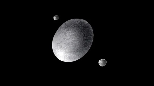 В нашей Солнечной системе есть карликовая планета Хаумеа в виде яйца. Ее форма обусловлена невероятно быстрым вращением. А еще - у нее есть два спутника ![]()