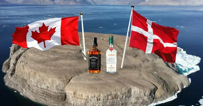 Мало кому известно, что Канада и Дания вот уже 38 лет находятся в состоянии войны за остров Ханс, и выглядит всё это весьма интеллигентно. Раз в полгода туда прибывают канадские военные, ставят свой флаг и выпивают виски, оставленный датчанами. А ещё через полгода то же самое делают солдаты Дании, и так по кругу.