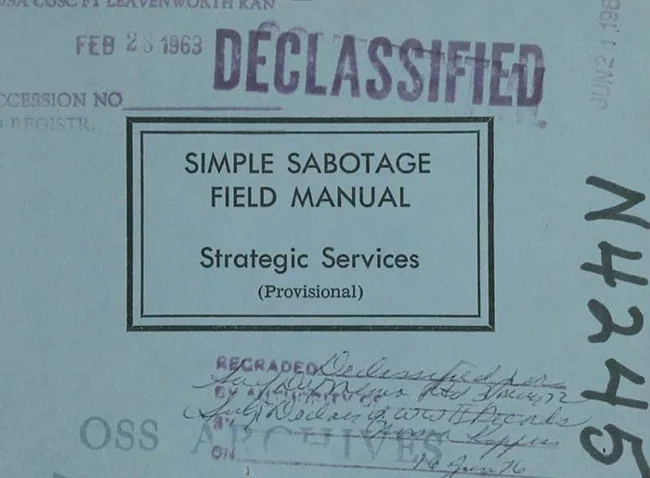 14. «Сегодня я узнал, что во время Второй мировой войны Соединенные Штаты опубликовали руководство для шпионов, призывающее менеджеров среднего звена на вражеской территории саботировать своих работодателей, поднимая не относящиеся к делу вопросы, продвигая плохих работников, пререкаясь из-за мелочей и проводя ненужные встречи».