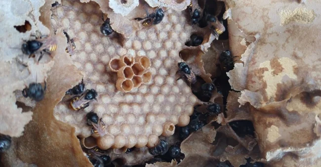А вот защиты от крупных животных у них нет от слова совсем. Это, внезапно, пошло жёлто-полосатым на пользу. Людям очень понравилось, что для добычи мёда не нужно облачаться в герметичные костюмы, накуривать насекомых или терпеть болезненные укусы. Животные крайне пассивны и вообще не пытаются защитить собранный мёд.