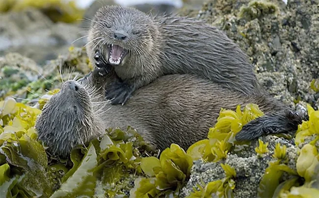 А всё потому, что добывать дары моря в тех местах, где обитает выдра — тяжкий труд. Да, зверьки с лёгкостью ныряют на глубину до 40 метров. Но лишь 26% всех погружений успешны. Волны попросту уносят животину к берегу и не дают нормально охотиться. Поэтому 70% своего времени наши герои проводят в поисках покушать.