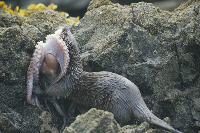 Если вы думаете, что ваша Муська много ест, посмотрите на кошачью выдру. Она слопает целого осьминога в один заход!