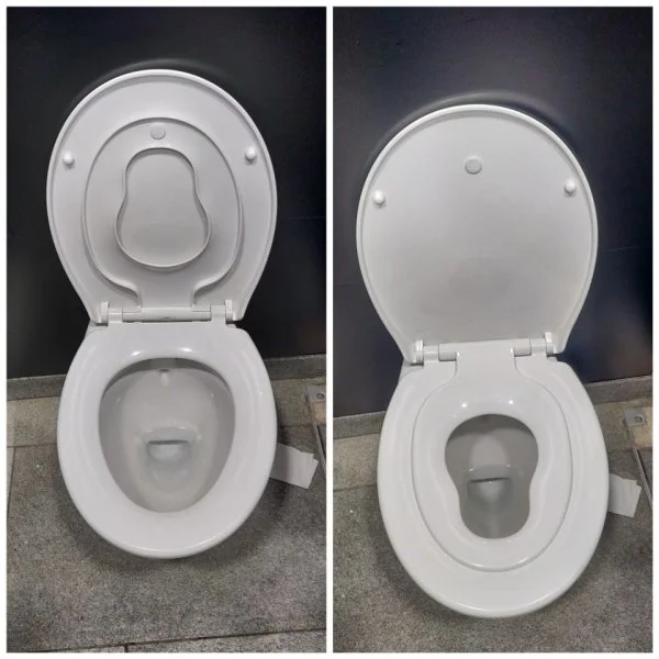 В общественном туалете торгового центра есть специальное сиденье, предназначенная для маленьких людей