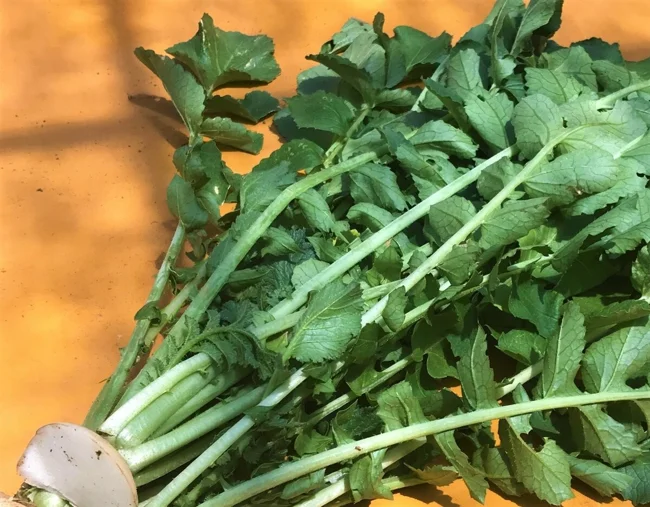 В листьях дайкона содержится много питательных веществ, например, β-каротин, которого мало в самом корнеплоде.