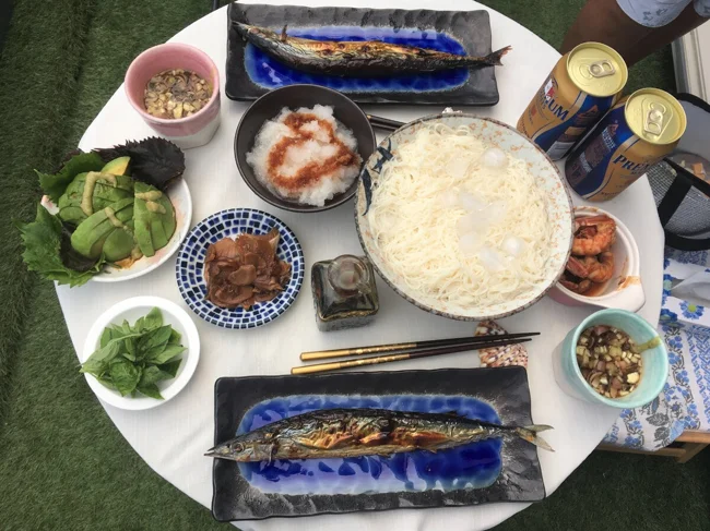 (Одэн* состоит из разных продуктов: дайкон, вареные яйца, конняку, тофу, рыбные и мясные фрикадельки, - всё тушится в горшочке в бульоне-dashi c соевым соусом. Едят с японской горчицей - karashi).