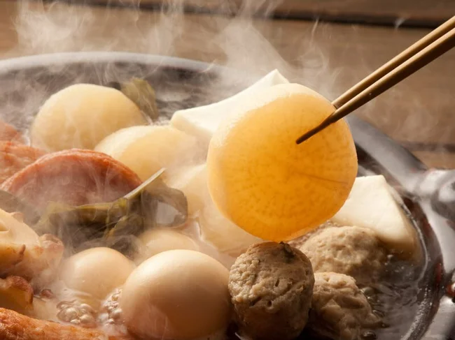 Очень популярен тушеный дайкон. Кладут кружочки редьки и в одэн*. Таро считает, что именно в одэне дайкон самый вкусный!