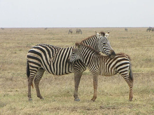 Зебры кладут головы друг другу на спину, когда отдыхают, так, что они могут наблюдать за происходящим за спиной своего приятеля-зебры. Со стороны это очень похоже на объятия зебры.