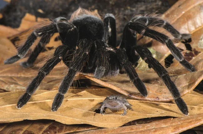 Тарантулы иногда держат крошечных лягушек в качестве домашних животных.