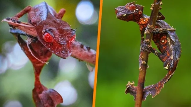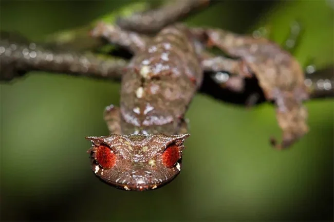 Сатанинский геккон: Его не видит никто, но он наблюдает за всеми. Так хорошо научился скрываться в листве, что видно лишь жуткие глаза! (7 фото)