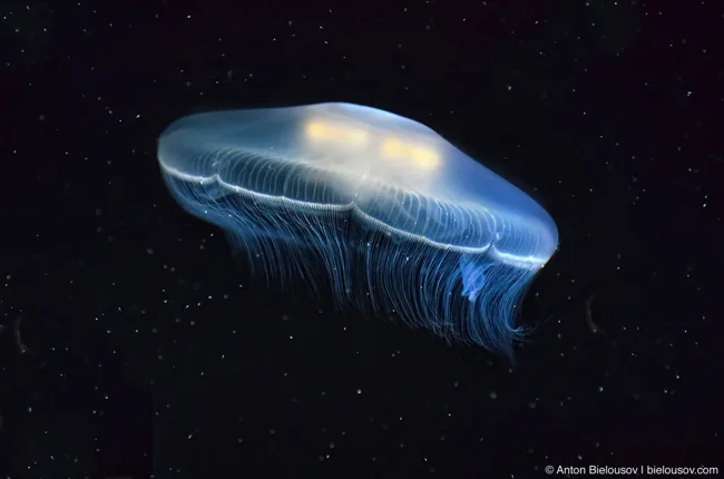 Вернёмся под воду, где обитает ещё одно существо, ставшее интернет-сенсацией. Оно было обнаружено в 2017 году командой морских биологов из Национального управления океанических и атмосферных исследований США. Rhopalonematid trachymedusa — это новый вид глубоководных медуз, ласково названный Медузой НЛО. У этого подводного инопланетянина есть два ряда щупалец: один ряд направлен вверх, другой — вниз. Изучение этой медузы всё ещё продолжается, но её необычное строение очаровывает как обычных людей, так и учёных.
