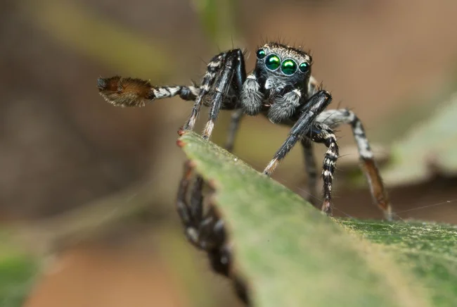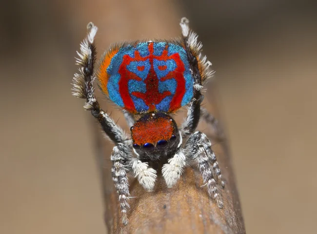 Вернёмся на сушу, в Австралию, где обитает другое странное существо в глубинах экосистемы. “Прыгающие пауки-павлины” по началу звучит ужасно, но, к счастью, они довольно маленького размера. Самцы вырастают до 4,1 миллиметра в длину, тогда как самки достигают 5,11 миллиметра. И при этом они становятся большой сенсацией — с момента, как в 2017 году Юрген Отто поделился фотографиями самцов, пытающихся завоевать самок эффектным брачным танцем. Первоначально Отто открыл этот вид в 2005 году, но только недавно пауки-павлины стали более известны.