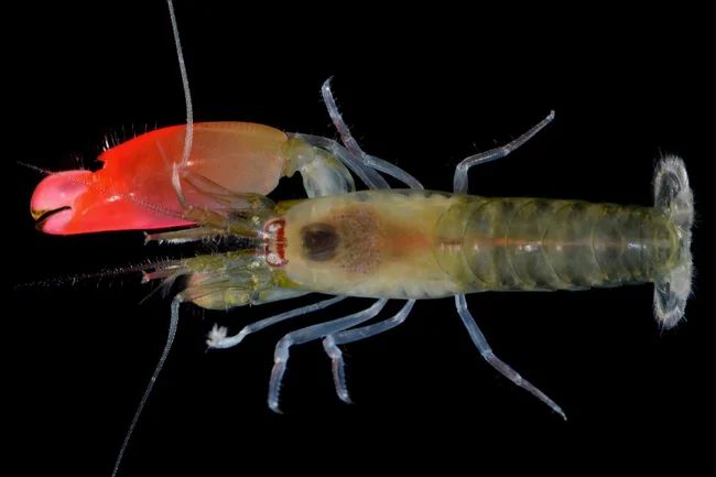 Теперь речь пойдёт о действительно примечательной креветке, названной в честь столь же примечательной группы. Обнаруженная в 2017 году ярко-розовая креветка Synalpheus Pinkfloydi может убивать звуком. Когда креветка клацает большой клешнёй, она производит звуковую энергию, достаточную, чтобы оглушить или убить добычу поблизости. Артур Энкор из Федерального Университета в городе Гояс в Бразилии и его коллеги при открытии креветки проявили себя как поклонники музыки Pink Floyd. Поминая, как группу обвиняли в убийстве всех рыб в озере рядом с местом проведения концерта, они решили, что такое название ей вполне подойдёт.