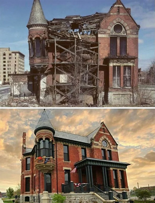 Апартаменты в колониальном стиле в Детройте, штат Мичиган. В 2019 году здание ремонтировали, на данный момент проект уже завершен.