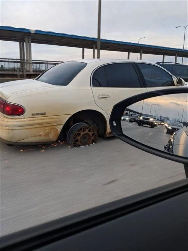 Чрезмерно увлёкся дорогой и не заметил, что едет без колеса