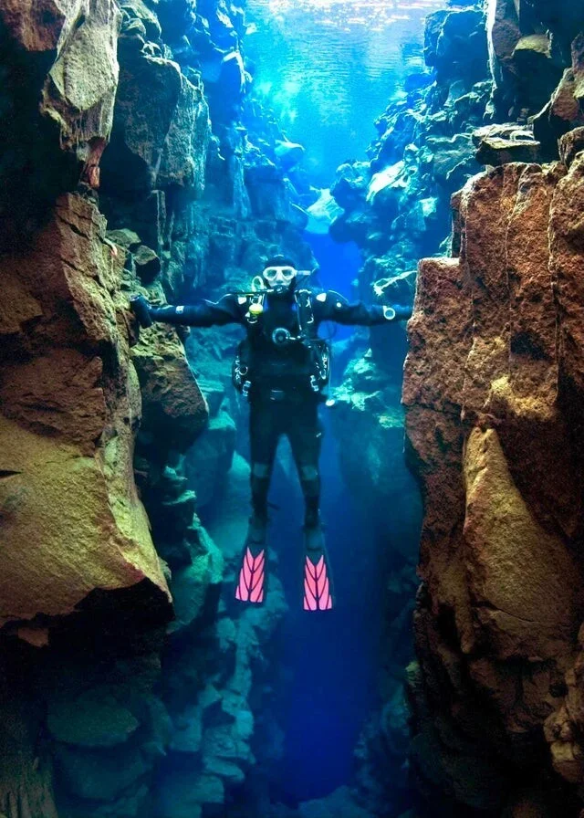 Исландская трещина Сильфра - единственное место на земле, где можно прикоснуться к Северной Америке и Европе одновременно