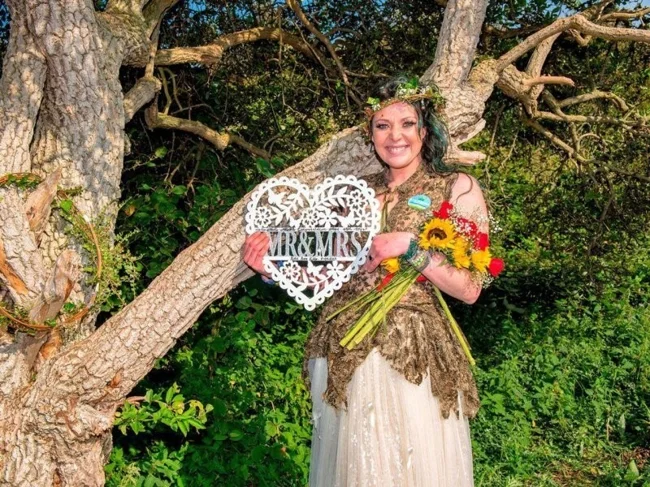 А еще в Индии, чтобы снять проклятие, иногда сочетаются браком с деревьями. И хотя британка Кейт Каннингем никоим образом к Индии не относится, она вышла замуж за бузину, растущую в парке. Через парк Римроуз Вэлли градостроители планировали строить дорогу, и таким поступком женщина хотела привлечь внимание к проблеме.