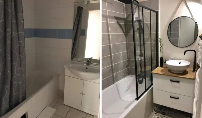 28. "Судя по всему, бывшие жильцы курили в этой ванной... То, что начиналось как попытка избавиться от запаха, превратилось в небольшой косметический ремонт, которым я теперь очень горжусь. До и после"