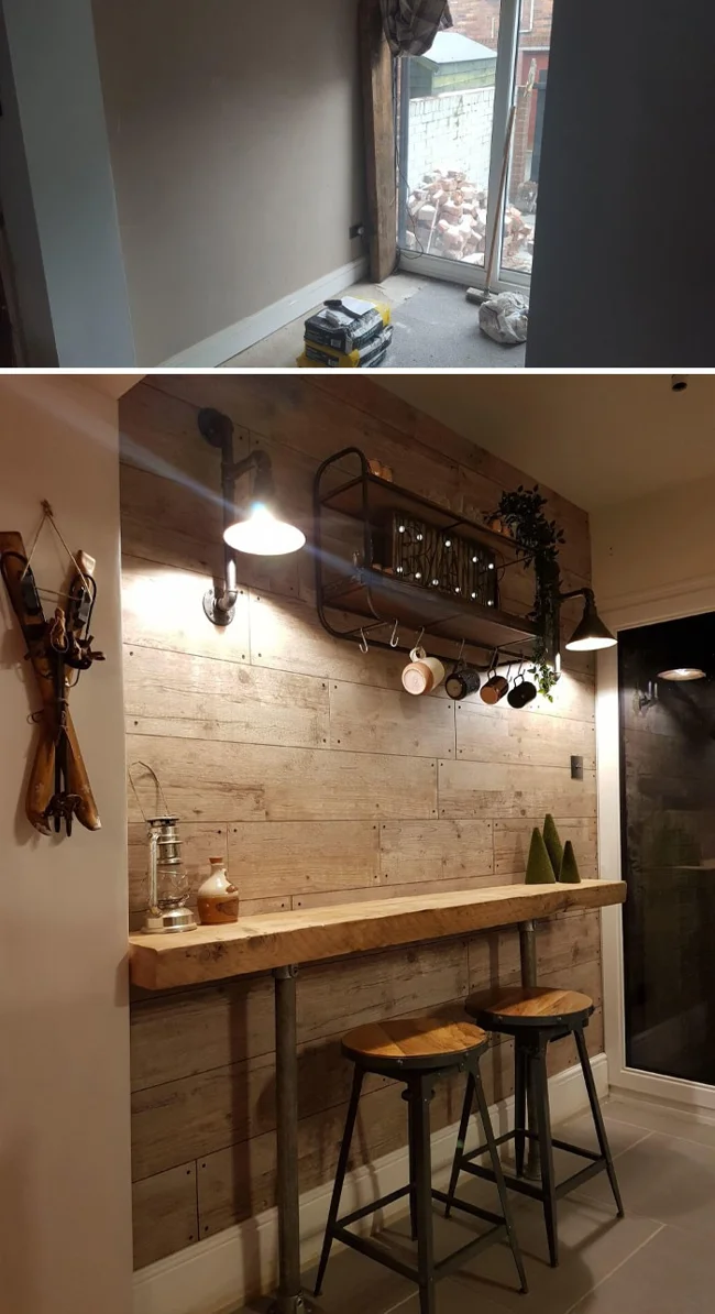 13. "Не знал, что сделать с этим пространством между кухней и столовой, чтобы разделить комнаты, поэтому решил сделать барную стойку. Минимальные навыки DIY"
