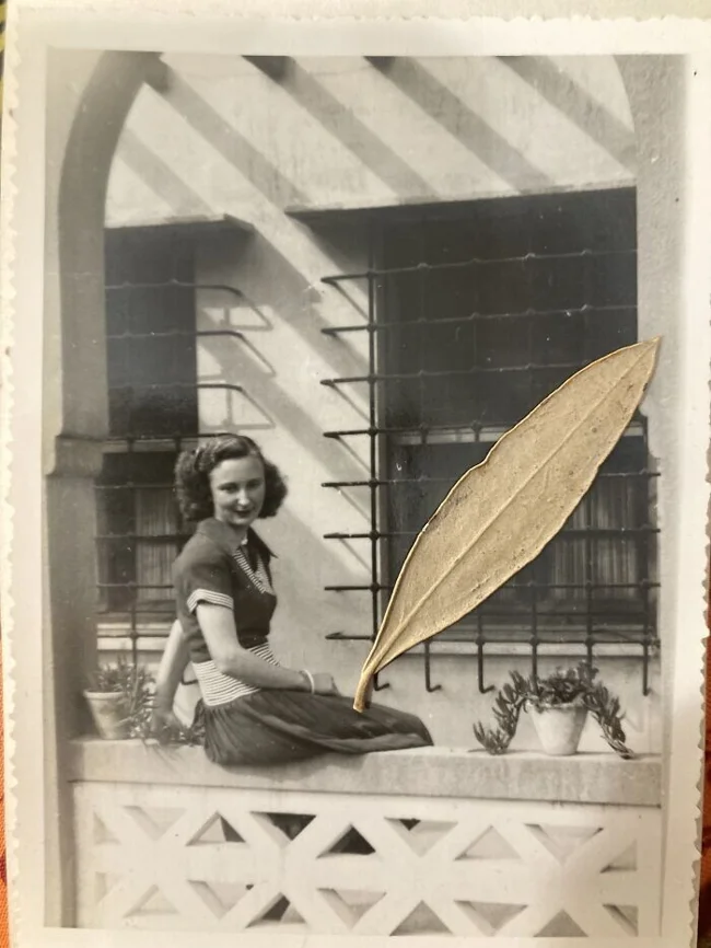 Моя 18-летняя мать позирует перед домом своих родителей в Бискре, Алжир. Это фото она своему отцу, умиравшему от рака во Франции, вложив в него лист из его любимой оливковой рощи. 75 лет спустя у меня все еще хранятся картинка и лист. А мама умерла 7 лет назад в возрасте 86 лет.