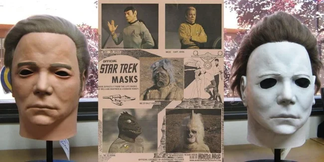 Зловещая маска Майкла Майерса в «Хэллоуине» ранее использовалась в «Звёздных войнах» для капитана Джеймса Кирка. Из-за ограниченного бюджета эту маску купили для ужастика, покрасили в белый цвет и изменили разрез глаз и волосы, чтобы сделать образ зловещим.