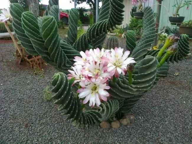 Многие любят кактусы из-за их непритязательности, но мало кто догадывается, насколько много различных причудливых видов этих растений. Этот бразильский красавец называется спиральный цереус. У него нет ствола, а стебли завиты.