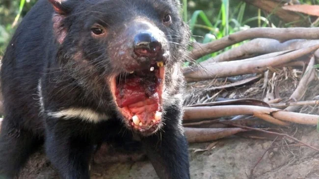19. Тасманские дьяволы живут в норах. Самец врывается в нору самки и нападает на неё. Он будет держать её в заложниках в течение нескольких дней, кусая и царапая, не давая выйти, пока она не выдохнется и не позволит ему спариться с ней